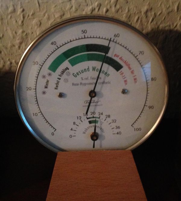 In ihrer Wohnung sollte die Luftfeuchtigkeit auch im Sommer nicht über 60 % steigen. Auf der Abbildung liegt der Wert genau an der Grenze.