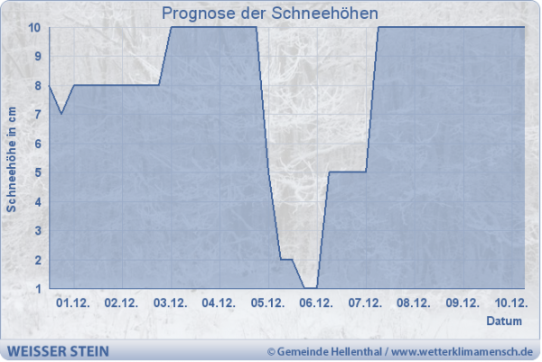 Unser Bild zeigt die Schneelage am Wetterpark am Donnerstag (09:00 Uhr) sowie die Schneeprognose für den Weißen Stein (700 m Höhe).