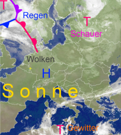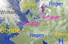Ruhige Wetterverteilung über großen Teilen des Kontinentes