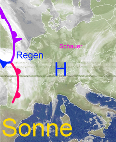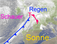 Frontensystem mit Regenwolken auf dem Weg nach Deutschland