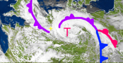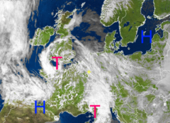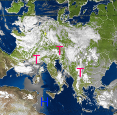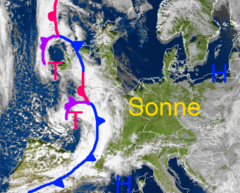 Regen und Schauerzellen über größeren Gebieten von Europa