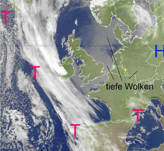 Wolken der Tiefdruckgebiete über dem Atlantik erreichen Britische Inseln.