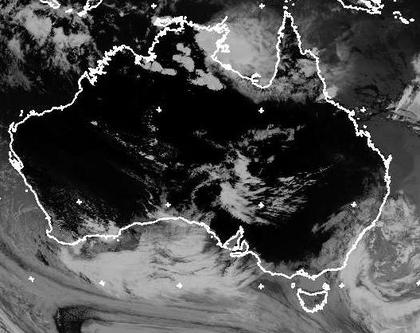 Auf dem Satellitenbild von Sonntag früh sind im Norden von Australien einige Schauer- und Gewitterzellen zu erkennen, und auch an der Südküste und im Südosten können dichtere Wolken etwas Regen bringen. Sonst bleibt es auf dem Kontinent meist wolkenfrei und trocken. (Bildquelle: NERC Satellite Receiving Station, Dundee University, Scotland, http://www.sat.dundee.ac.uk/)