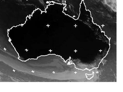 Das Satellitenbild von Samstag früh zeigt den australischen Kontinent fast wolkenfrei. Dafür verantwortlich ist ein Hochdruckgebiet, dass sich über weite Teile des Landes erstreckt. Nur im äußersten Südosten und auf Tasmanien kann ein Tiefausläufer Wolken und etwas Regen bringen. (Bildquelle: NERC Satellite Receiving Station, Dundee University, Scotland, http://www.sat.dundee.ac.uk/)