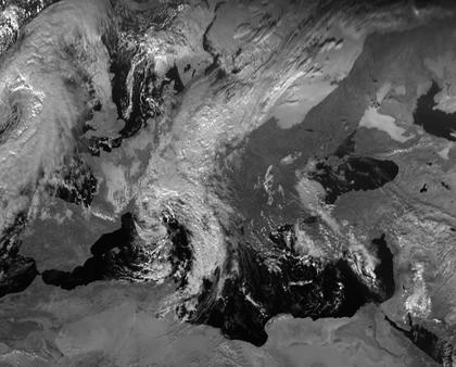 In weiten Teilen Europas sorgt Hochdruckeinfluss für freundliches Wetter. In Mitteleuropa sorgt allerdings Tief 'Emilya' für dichte Wolken und Regen oder Schnee. Auch im Einflussbereich von Tief 'Ditte' mit Zentrum über Karelien halten sich dichte Wolken.