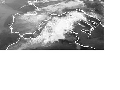 Auf dem Satellitenbild von Mittwoch früh sind vor allem von Nordafrika über die Balearen bis nach Norditalien, sowie über den Alpen teils dichte Wolken zu erkennen. Hier sorgen Tiefdruckeinfluss und feuchtwarme Luftmassen gebietsweise für kräftige Schauer und Gewitter, die sich im Tagesverlauf auch noch verstärken können. (Bildquelle: NERC Satellite Receiving Station, Dundee University, Scotland, http://www.sat.dundee.ac.uk/)