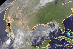 Auf dem heutigen Satellitenfoto sind über dem mexikanischen Festland sowie über dem Golf von Mexiko verbreitet viele Wolken zu erkennen, diese sorgen dort ebenfalls verbreitet für häufige, teils kräftige Schauer oder Gewitter. In den USA dominiert, mit Ausnahme eines Tiefdrucksystem westlich der Großen Seen, Hochdruckeinfluss mit trockenem und meist freundlichem Wetter.