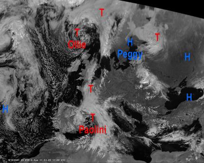 Auf dem heutigen Satellitenfoto ist das ausgeprägtes Tief 'Paolini' im westlichen Mittelmeer zu erkennen. Es sorgt besonders im Süden Frankreichs und im Osten Spaniens für zahlreiche Schauer und teils auch für Gewitter. Auch weiter nach Norden, über Nordfrankreich bis nach England fällt aus teils dichten Wolken zeitweise etwas Regen. Weiter nach Osten im zentralen und östlichen Mittelmeerraum, sowie in Mitteleuropa und Osteuropa ist es dagegen meist freundlich bei nur örtlichen Schauern oder Gewittern.