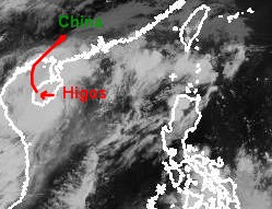 Das tropische Tief 'Higos' zieht heute mit teils ergiebigen Niederschlägen über die südchinesische Insel Hainan hinweg. Zur Zeit erreicht 'Higos' nur Windböen um 75 km/h, heute Abend soll sich das Tief allerdings zu einem tropischen Sturm mit Windspitzen bis 85 km/h entwickeln. Voraussichtlich Morgen Mittag hat 'Higos' seinen Landgang und wird sich wiederum etwas abschwächen, wobei es noch zu ergiebigen Niederschlägen in der südchinesischen Provinz Guangxi kommen kann.