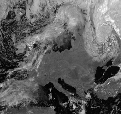 Während weite Teile des mittleren Europas unter Einfluss von Hoch 'Ludger' wolkenarm sind, ist es im Nordwesten Europas unter Einfluss von Tief 'Kathrein' bereits bewölkt.
