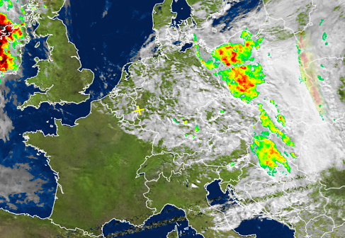 Über Deutschland liegt immer noch dichte Bewölkung des absziehenden Tiefs mit Schauern. Hoch "Peter" ist aber schon über der Nordsee und Skandinavien zu erkennen, auch über Frankreich. Es setzt sich jetzt kurzzeitig in Deutschland durch.