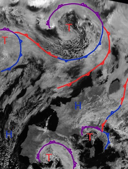 Tiefdruckgebiete mit ihren vielen Wolken ziehen über den Norden Europas, aber auch am Mittelmeer bringen sie wechselhaftes Wetter. Dagegen konnte sich von den Azoren ausgehend eine Hochdruckbrücke bis nach Nordwestdeutschland etablieren, aus dem das neue Hoch 'Nives' über Benelux hervorgeht. In diesem Bereich ist die Bewölkung deutlich geringer. Die Hochdruckbrücke bleibt in den nächsten Tagen sehr beständig und sorgt für frühlingshaftes Wetter in einigen Teilen Europas.