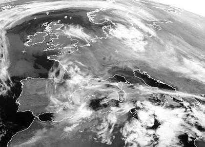 Von den Britischen Inseln bis nach Südosteuropa erstreckt sih der Einfluss von Hoch 'Drago'. Es lenkt die Tiefs mit ihrer Bewölkung im großen Bogen über Skandinavien nach Osteuropa. Einzelne höhere Wolkenfelder schaffen es dennoch nach Ostdeutschland oder auf die Nordsee. Die ausgedehnte Hochnebeldecke darunter ist dagegen nicht zu erkennen. Am Mittelmeer kommt es unter Tiefdruckeinfluss zu Schauern mit teils sehr kräftigem Regen.