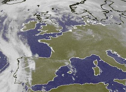 In weiten Europas überwiegt Hochdruckeinfluss, von Italien und Frankreich bis nach Polen gibt es nur wenige Wolken, teils bildet sich aber Nebel oder Hochnebel. Ein Sturmtief südlich von Island bringt dagegen Wolken mit Regen nach Westeuropa und Skandinavien.