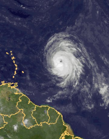 Hurrikan 'Bill' liegt derzeit über dem Atlantik, westlich der kleinen Antillen. Auch sein Auge zeichnet sich gut auf dem Satellitenbild ab. Der Wirbelsturm erreicht derzeit Böen bis zu 180 km/h und wird sich noch weiter verstärken. Die Gefahr für die Antillen ist jedoch eher gering, da 'Bill' nach den neuesten Berechnungen nach Nordosten und damit an den Inseln in einigem Abstand vorbei weiterzieht.