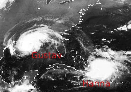 Der Hurrikan 'Gustav' lag am Montagmorgen (Ortszeit) über dem Mississippidelta. Dabei erreichte er mittlere Windgeschwindigkeiten bis 175 km/h und in Böen bis zu 215 km/h. Er zieht nun langsam ins Landesinnere und schwächt sich dabei rasch ab. Es kommt aber weiter noch zu sehr ergiebigem Regen.