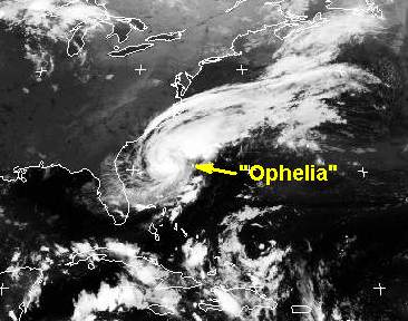 Der Hurrikan 'Ophelia' nähert sich der US-Atlantikküste, an der Küste von Carolina sorgt es für Regenfälle und zunehmenden Wind, der am Montag und Dienstag die Geschwindigkeit von etwa 160 km/h erreicht.