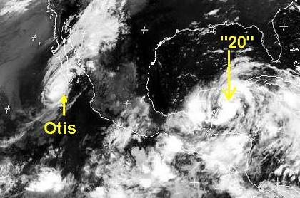 Der Hurrikan 'Otis' nahe der mexikanischen Pazifikküste verlagert sich mit Windgeschwindigkeiten von etwa 140, in Böen 170 km/h nach Norden in Richtung Niederkalifornien, zu Beginn der neuen Woche trifft er auf die Südwestküste der Halbinsel.