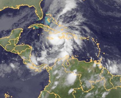 In der Karibik befindet sich der Hurrikan 'Thomas'. In seinem Bereich werden z.Z. Windgeschwindigkeiten von 75 km/h erreicht.