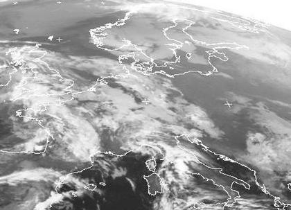 Deutschland liegt am Dienstagmorgen an der Grenze zwischen trockener und kühler Festlandsluft über Nordosteuropa und feuchter, milder Luft über Südwesteuropa. ein alter Tiefausläufer markiert sie mit Wolken von der Nordsee und der Elbmündung bis zum Erzgebirge.