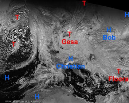 Das Satellitenbild von heute Nachmittag zeigt über Europa meist viele Wolken. Häufige Schauer und teils auch Gewitter entwickeln sich im Einflussbereich von Tief 'Floora' im östlichen Mittlmeerraum. Auch auf der Iberischen Halbinsel kommt es häufig zu Schauern. Von Skandinavien bis nach Deutschland und Polen ist es vielfach trüb bei teils etwas Regen oder Schnee. Auch sonst ist es sowohl im Norden als auch im Osten Europas trotz Hochdruckeinfluss häufig trüb, aber meist auch trocken.