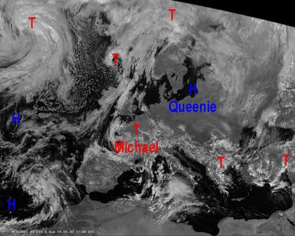 Auf dem heutigen Satellitenfoto zeigt sich über dem Süden Europas häufig Tiefdruckeinfluss und es kommt gebietsweise zu teils kräftigen Schauern oder Gewittern. In vielen Teilen des Mittelmeers scheint aber auch die Sonne, vor allem an der spanischen Mittelmeerküste. Auch von Frankreich, über Großbritanien und in den Norden Skandinaviens dominieren Wolken mit gelegentlichem Regen das Wettergeschehen. Deutlich freundlicher und trocken ist es vom südlichen Skandinavien bis nach Deutschland und weiter nach Osten bis in den Westen Russlands, hierbei ist es häufig auch wolkenlos.