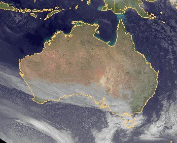 Überwiegend herrscht über Australien wolkenfreies Wetter. Über den Süden ziehen jedoch mit Ausläufern von Tiefs über dem Südpolarmeer auch dichte Wolkenfelder, teils mit Regen hinweg.