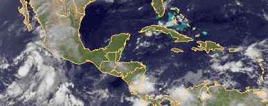 Auf dem heutigen Satellitenfoto von Mittelamerika zeigt sich der überwiegende Teil nur gering bewölkt oder wolkenlos, dabei kann es örtlich bis zu 43°C heiss werden. Besonders nach Süden hin von Nicaragua über Costa Rica bis nach Panama kommt es bei vielfach hochreichender Bewölkung gebietsweise zu teils kräftigen Schauern oder Gewittern.
