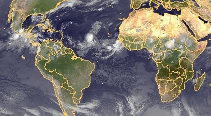 Von Mittelamerika über dem Norden Südamerikas bis zum zentralen Afrika haben sich Schauer und Gewitter entwickelt. Diese entstehen in Zusammenhang mit der innertropischen Konvergenzzone.