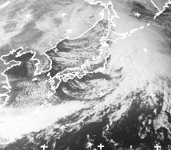 Die meisten Wolken der Ausläufer eines Tiefs über dem nördlichen Japanischen Meer sind auf den Pazifik gezogen. Auf ihrer Rückseite strömt aber vom asiatischen Festland sehr kalte Luft nach Süden und Osten. Dabei bilden sich auf dem Meer viele Schauerwolken. Vor allem auf der Nordseite der japanischen Gebirge schneit es daher. Weiter im Süden kann es auch regnen. (Bildquelle: NERC Satellite Receiving Station, Dundee University, Scotland, http://www.sat.dundee.ac.uk/)
