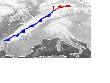 Ein dichtes Wolkenband erstreckt sich von Südschweden über die Nordsee bis in die Biskaya und beinhaltet die Kaltfront eines Tiefs über Südskandinavien. Diese Kaltfront wird heute weiter nach Südosten wandern, und dabei die dort noch vorherrschenden feucht-milden Luftmassen verdrängen und durch kühlere ersetzen. (Bildquelle: NERC Satellite Receiving Station, Dundee University, Scotland, http://www.sat.dundee.ac.uk/)