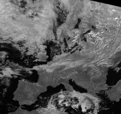 Die Kaltfront des Tiefs 'Noah' über Nordrussland ist von Norden nach Mitteleuropa gezogen. Mit ihr ist kühlere und feuchtere Luft herangeströmt. In ihr haben sich einige Wolken gebildet, sie liegen im Bereich von Nordfrankreich über das mittlere und nördliche Deutschland bis nach Russland. Weiter nach Süden findet man über Europa unter Hochdruckeinfluss nur wenige Wolken. Jedoch bringt ein kräftiges Tief über dem zentralen Mittelmeer mehr Wolken mit teils kräftigem Gewitterregen.