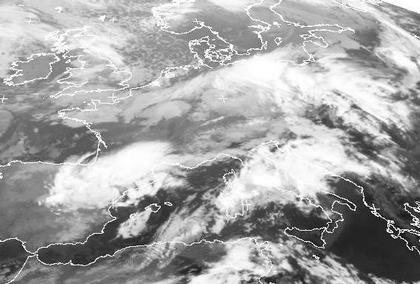 Die Kaltfront des Tiefs 'Florian' mit seinem Zentrum über Schweden reicht von der Ostsee über Norddeutschland bis zu den Benelux-Ländern. Sie trennt kühlere Luftmassen aus dem Norden von wärmeren im Süden. An dieser Grenze kommt es zum Teil zu kräftigen Niederschlägen, aber auch in den wärmeren Luftmassen können sich zum Teil gewittrige Schauer bilden. Weitere Schauer und Gewitter entwickeln sich in den Tiefdruckgebieten über den Pyrenäen und über Italien. Schön zu erkennen sind wolkenfreie Gebiete zwischen den Tiefs, wie zum Beispiel in Frankreich. Diese entstehen durch absinkende Luftbewegung, die ihrerseits durch divergente Strömung in Bodennähe hervorgerufen wird.