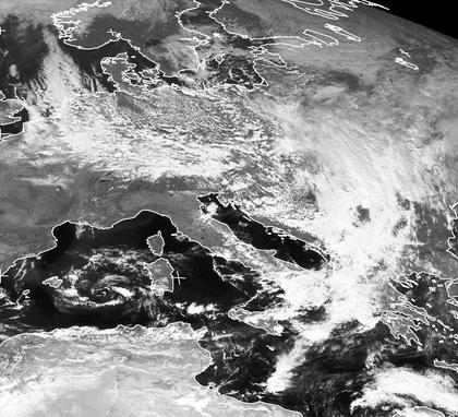 Die Kaltfront von Tief 'Munir' liegt am Freitag Mittag von Süditalien über Griechenland bis zur Ukraine. Im Frontbereich kommt es zu teils gewittrigen Regenfällen, die mit weiterer Verlagerung nach Südosten morgen teils unwetterartig ausfallen können. Hinter der Kaltfront haben sich über Deutschland , den Benelux-Staaten und Polen zahlreiche Schauer gebildet. (Bildquelle: NERC Satellite Receiving Station, Dundee University, Scotland, http://www.sat.dundee.ac.uk/)