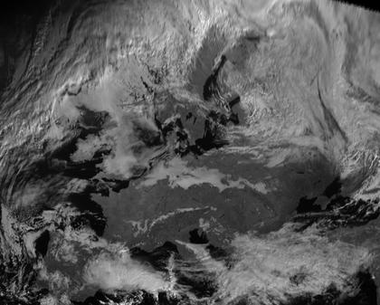 Das heutige Satellitenfoto zeigt von West- über Mittel- bis nach Osteuropa einen breiten Streifen ohne Wolken oder nur mit geringer Bewölkung, hier sorgt eine Hochdruckbrücke für vielfach ruhiges, trockenes und meist sehr freundliches Wetter. Über dem westlichen Mittelmeer und an der spanischen Mittelmeerküste bringt dagegen ein Tiefdrucksystem gebietsweise kräftigen Regen. Ein weiteres Tief erstreckt sich von der südlichen Adria bis in die Westhälfte der Türkei und bringt hier zeitweiligen Regen. Im Norden und Nordosten Europas herrscht meist leichter Tiefdruckeinfluss mit trüben und teils nassem Wetter. Vor allem in Skandinavien war es heute aber auch vielfach freundlich und trocken.
