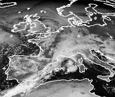 Zu Tief 'Ilse' bei Schottland gehört eine langgestreckte Kaltfront. Ihre Wolken liegen über Deutschland, Südostfrankreich, an der spanischen Mittelmeerküste und über Marokko. Die Luftmasse im Westen, hinter der Kaltfront ist jedoch nur geringfügig kühler als diejenige auf ihrer Vorderseite. Sie ist jedoch etwas feuchter, sodass von Westen über Frankreich Wolken mit etwas Regen folgen. (Bildquelle: NERC Satellite Receiving Station, Dundee University, Scotland, http://www.sat.dundee.ac.uk/)