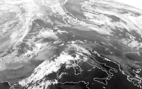 Unter Hochdruckeinfluss sind weite Teile Europas fast wolkenfrei oder nur gering bewölkt. Daneben gibt es aber auch wolkige Gebiete mit Schauern und Gewittern, wie zum Beispiel entlang der Mittelmeerküste von Südspanien bis nach Frankreich, oder über den Benelux-Staaten.