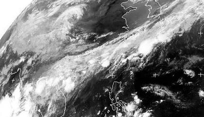 Ein lang gezogenes Wolkenband erstreckt sich derzeit von Japan über Südchina bis nach Vietnam. Dabei entwickeln sich regional hochreichende Gewitterzellen, wie auf dem Satellitenbild schön zu sehen ist. Örtlich kann dabei ergeibiger Regen fallen.