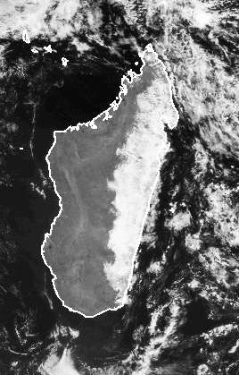 Auf dem Satellitenbild vom Montagvormittag zeigt sich die Ostseite der Gebirge der Insel Madagaskar von dichten Wolken verhangen. Der Südostpassat hat hier die feuchte Luft vom Indischen Ozean zum Aufsteigen gezwungen, sodass sich die Wolkendecke bilden konnte, teils bringt sie auch etwas Regen. Auf der Rückseite der Gebirge findet man keine Wolken. Am Nachmittag änderte sich das Bild jedoch, während dann auch im Westen Gewitter entstanden, konnte die Erwärmung durch die Sonne die Wolken im Osten auflockern. (Bildquelle: NERC Satellite Receiving Station, Dundee University, Scotland, http://www.sat.dundee.ac.uk/)