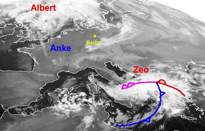 Das Tief „Zeo“ liegt über dem Ionischen Meer und sorgt weiterhin für teils kräftige Regenfälle auf dem südlichen Balkan und in Süditalien; auf der Rückseite des Tiefs haben sich in kühler Luft mehrere Schauerwolken entwickelt, man kann sie sehr gut über dem westlichen Mittelmeer sowie über Nordafrika erkennen. Das Hoch „Anke“ mit Zentrum über Mitteleuropa bringt weiterhin ruhiges, teils trübes, teils heiteres Wetter vom Atlantik bis nach Osteuropa. Über Skandinavien und der Nordsee halten sich dichte Wolken des neuen Tiefs „Albert“, am Sonntag überquert seine Warmfront Deutschland und Polen.