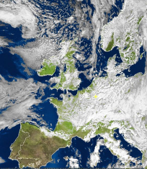 Das Satellitenfoto von heute Nachmittag zeigt den europäischen Kontinent unter meist vielen und oft auch dichten Wolken. Tiefdruckgebiete über Skandinavien, über dem zentralen Mittelmeer, sowie über Osteuropa sorgen mit ihren Ausläufern für verbreitet unbeständiges, kühles und von zahlreichen Schauern durchsetztes Wetter.