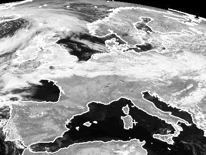 Von Spanien und Italien bis in den äußersten Südwesten Deutschlands bestimmt Hochdruckeinfluss das Wetter, auf dem Satellitenbild vom Freitagmittag sind hier kaum Wolken zu finden. Weiter im Norden bringt die Nordwestströmung weiter noch feuchte Luft mit entsprechend starker Bewölkung nach Deutschland. Mit der Verlagerung der Hochdruckgebiets nach Norddeutschland lösen sich aber die Wolken im ganzen Land zunehmend auf. (Bildquelle: NERC Satellite Receiving Station, Dundee University, Scotland, http://www.sat.dundee.ac.uk/)