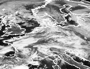 Das Tief 'Ingo' über Norddeutschland sorgte am Donnerstag in Deutschland meist noch für viele Wolken. Vor allem im Südwesten erkennt man auf dem Satellitenbild vom Donnerstagmittag auch schon Auflockerungen. Über Frankreich liegt aber auch noch ein ausgedehntes Gebiet mit einer geschlossenen Hochnebeldecke. Westlich der Kaltfront von 'Ingo', über der Nordsee und England liegen größere wolkenfreie Gebiete. Hier entwickelt sich auch das neue Hoch 'Olga', das am Wochenende in Deutschland für viel Sonnenschein sorgt. (Bildquelle: NERC Satellite Receiving Station, Dundee University, Scotland, http://www.sat.dundee.ac.uk/)