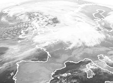 Das Orkantief 'Franz' liegt mit seinem Zentrum über dem Europäischen Nordmeer. Es bringt von Westen ein dichtes Wolkengebiet mit teils kräftigem Regen nach Deutschland. Dahinter strömt etwas kühlere Luft heran. In ihr haben sich um Irland und Schottland bereits Schauerwolken gebildet. (Bildquelle: NERC Satellite Receiving Station, Dundee University, Scotland, http://www.sat.dundee.ac.uk/)