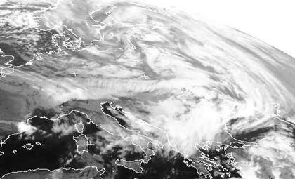 Das Orkantief 'Ingo' mit Kern über dem Baltikum bringt wechselhaftes und zum Teil stürmisches Wetter in weiten Teilen Europas. Von der Nordsee bis zum Schwarzen Meer und weiter nach Osten bis nach Westrussland halten sich dichte Wolken. Die Kaltfront des Tiefs liegt zurzeit über Westrussland und der Ukraine. Auf seiner Rückseite entwickeln sich verbreitet Schauerwolken, sehr gut kann man sie über der Nordsee und Deutschland erkennen.