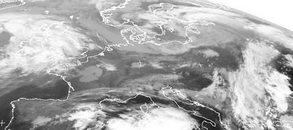Die Kaltfront des Tiefs 'Michael' über Ostrussland bringt teils kräftige Schauer und Gewitter auf dem Balkan sowie rund um das Schwarze Meer. In weiten Teilen Mitteleuropas sorgt das Hoch 'Sandra' für nur lockere Bewölkung, nur entlang der deutschen und polnischen Küste halten sich dichtere Wolken einer Okklusionfront. Über den Britischen Inseln sind Wolken des Atlantiktiefs 'Nick' zu erkennen. In der Nacht und morgen streift seine Warmfront Norddeutschland mit seinen Regenwolken.