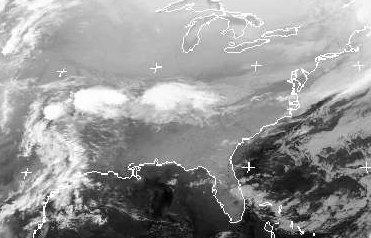 Über der Mitte der USA zwischen Colorado und Kentucky liegt ein Tiefausläufer mit seinem Wolkenband, das örtlich kräftige und schauerartige Regenfälle bringt. Weiter nach Norden und Süden bleibt es dagegen unter Hochdruckeinfluss meist gering bewölkt. (Bildquelle: NERC Satellite Receiving Station, Dundee University, Scotland, http://www.sat.dundee.ac.uk/)