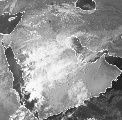 Durch von Norden eingeströmte kühle Luft hat sich über der Arabischen Halbinsel ein Höhentief gebildet, das für Wolken und teils kräftige und gewittrige Regenfälle sorgt. Am Montag verlagert sich der Schwerpunkt des Regengebiets in die Region um den nördlichen Persischen Golf.