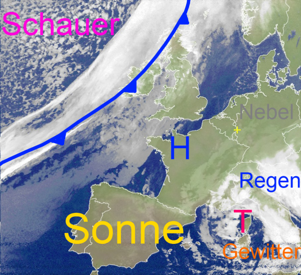 Während in Deutschland meist ruhiges und teils trübes Novemberwetter vorherrscht, scheint über Teilen Frankreichs und Spanien die Sonne. Die Temperaturen liegen jedoch nur noch im südlichen Bereich von Spanien und Portugal um, oder leicht über 20 Grad.