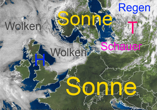 Das Tief über dem Baltikum welches für die Abkühlung über Norddeutschland verantwortlich ist behält seine Regenwolken bei sich. Daher kommt es nur über dem Baltikum, Nordwestrussland und in Teilen Polens zu Regenfällen oder Schauern.